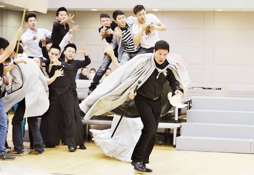 9月18日,音樂戲劇《美麗的藍色多瑙河—— 一八七二年約翰·施特勞斯訪美的故事》將登國家大劇院舞臺。作為國家大劇院首次制作的音樂戲劇,這部改編自《李嵐清音樂筆談》相關內容的原創作品自8月底透露創排消息以來就備受關注。11日,在該劇的媒體探班活動中,宗平、姜昆、原華三位主演現場表演了劇中的精彩片段,而該劇的舞蹈演員也向媒體展示了美輪美奐的舞蹈。左圖為排練現場。