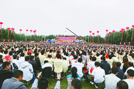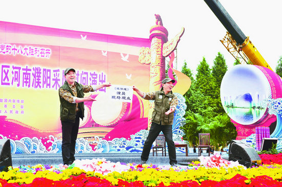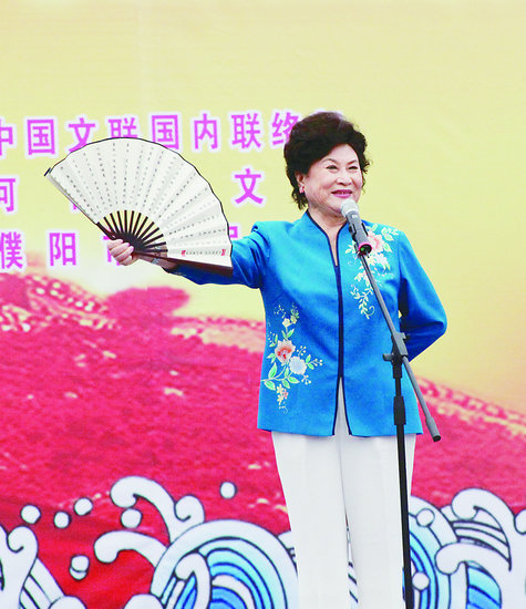 26日下午,本次活動的主場演出在濮陽市濮上園廣場盛大開演。在牛群、鞠萍幽默詼諧的主持串聯(lián)下,姜昆與搭檔戴志誠的相聲《歡歌笑語》,姜克美的京胡獨奏《夜深沉》,中國雜技團有限公司的雜技《俏花旦——抖空竹》,劉蘭芳的評書《張飛請孔明》,汪荃珍的豫劇《抬花轎》選段,遂寧市雜技團的雜技《比翼——雙人倒立技巧》,高保利的《山丹丹開花紅艷艷》,劉全和、劉全利的滑稽小品《兄弟拍電影》,焦健東、石磊的口技,濟南市雜技團的《空中彩綢》,李彥培的《變臉》,殷秀梅的《在希望的田野上》以及她與毋攀合唱的《走向復興》等節(jié)目一一精彩呈現(xiàn),為現(xiàn)場兩萬余名觀眾呈上一場豐盛的文化盛宴。