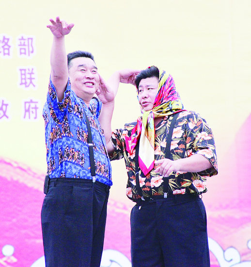 26日一大早,顧不上頭一天晚上冒雨趕路的疲勞,中國文聯(lián)文藝志愿服務(wù)團藝術(shù)家小分隊的演員們就抖擻精神,在中國文聯(lián)黨組副書記、副主席李屹的帶領(lǐng)下趕往革命老區(qū)河南濮陽清豐縣雙廟鄉(xiāng)單拐村,為那里的鄉(xiāng)親們演出。道路兩旁的農(nóng)田里滿是即將成熟的玉米,沉甸甸地傳遞著豐收的訊息,路上行人們的臉上則掛著笑容,他們正趕往演出的地點。而藝術(shù)家們也在顛簸行駛的汽車里為演出做著精心準備:牛群口中念念有詞,時而沉思,時而默背,認真推敲著一會兒的主持詞;劉全和、劉全利兄弟倆也在對著臺詞,還不時地比劃兩下……