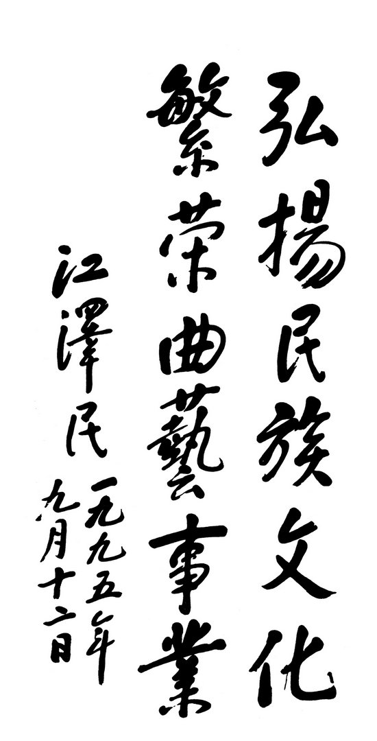 1995年9月12日,江澤民為第二屆中國曲藝節(jié)題詞