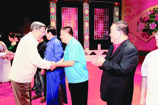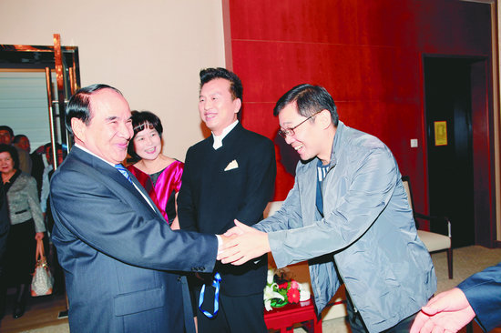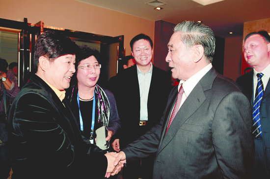 2011年10月23日,在浙江省紹興縣舉辦的第七屆中國曲藝節(jié)閉幕式晚會(huì)前,熱地接見曲藝演員