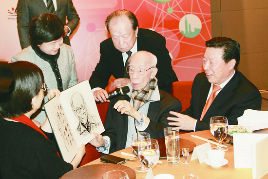 孫家正代表中國文聯贈送饒公“壽”字書法作品,祝他健康長壽