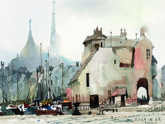 墨分五彩源于水,劉大為的水彩仿佛彩墨?!安省敝兴畾夂〞沉芾?,形成鮮明的個人風格。他對色彩的運用、色調的把握、光影的處理、水分的滲化、筆觸的率性奔放,中西交融,自成一家。