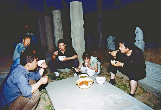 沉重的石器需要用吊車起動;裝了車還要鋪上柴草樹枝,遮人耳目。等到夜深人靜,晚12點從村里出發(fā),把貨送到高陵等地,下半夜三四點鐘就能趕到西安,把它們運送到長安郭杜的秘密庫地。