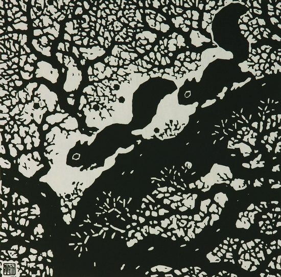 林間(黑白木刻版畫) 1980年