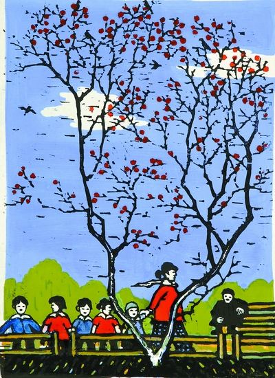 春天(套色木刻版畫) 2008年