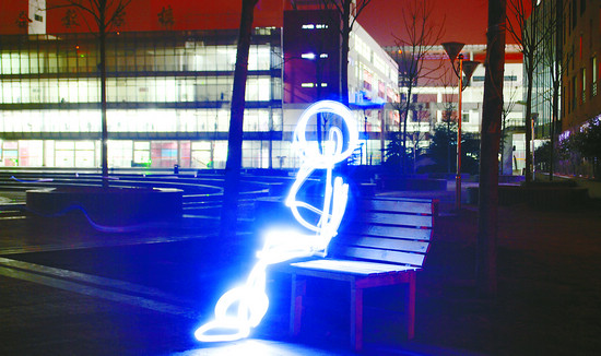 畫(huà)面的選取,剛開(kāi)始我們先找比較暗的地方去練手,努力練習(xí)出自己想要的效果,因?yàn)槭菓{空畫(huà)畫(huà),沒(méi)有路徑,只有自己事先在腦海中想象,所以我們要不斷練習(xí),在相機(jī)中反復(fù)研究,感覺(jué)差不多的時(shí)候,我們就可以去稍微有一點(diǎn)背景的地方創(chuàng)作了,單單是光涂鴉會(huì)比較單調(diào),要是加上背景的夜晚效果,出來(lái)的作品一定更棒。