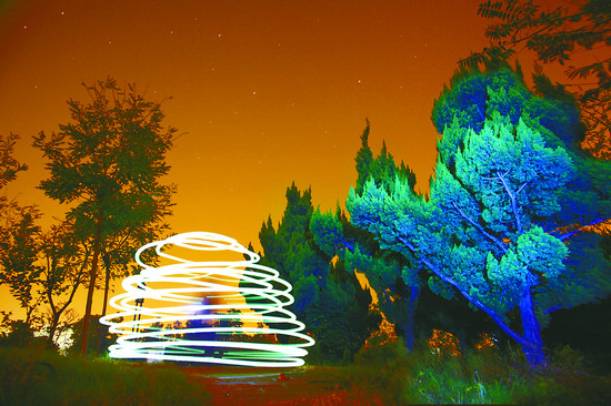 當(dāng)然,如果自己對(duì)光涂鴉有更好的創(chuàng)意,想拍大場(chǎng)面,一個(gè)人又涂鴉不來(lái)的時(shí)候,可以找?guī)褪?。不過(guò)找之前自己需要想好怎么去組織大家,怎么才會(huì)增加效率,使現(xiàn)場(chǎng)不會(huì)混亂。就如一個(gè)演奏團(tuán)一樣,需要一個(gè)很好的指揮,才能奏出悅耳的音樂(lè)。