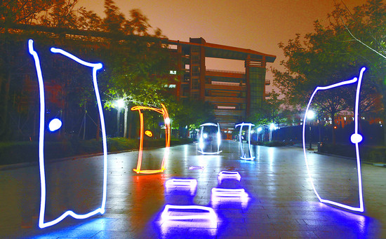 雖然沒(méi)有煙花那么夸張,但是線條畫(huà)出來(lái)會(huì)有細(xì)膩、靜謐的感覺(jué)。而且五顏六色,成本低,安全性高,還便于掌控。我們最??吹降墓饫L作品就是利用LED手電筒所創(chuàng)作的。