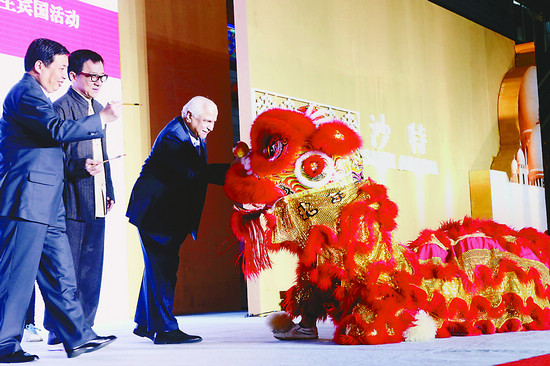 近日,“璀璨中華”——2013年沙特“杰納第利亞遺產文化節”中國主賓國活動在北京首都博物館啟動,此次活動由文化部聯合國家宗教事務局、北京市人民政府、江西省人民政府、甘肅省人民政府以及中華人民共和國駐沙特阿拉伯王國大使館共同主辦。在啟動儀式上,文化部外聯局副局長張愛萍與沙特駐華大使宰德共同為國際巨星成龍頒發了本次文化節“中國文化大使兼主賓國館榮譽館長”的聘書。成龍現場履行起“館長”的義務,對中國主賓國的概況與特色進行了介紹,并希望能夠通過這樣的活動讓世人對中華文化有更多的了解。他還開玩笑地說,接受這個聘書以后,再去沙漠取景、拍攝飛車等戲份時就更方便了。之后,成龍為現場舞動的雄獅“點額”,而沙特駐中國大使宰德和張愛萍則為雄獅“點睛”,共同開啟中國文化赴沙特展覽之旅。