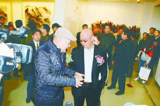萬(wàn)鼎與中國(guó)國(guó)家畫院名譽(yù)院長(zhǎng)龍瑞在畫展上交流