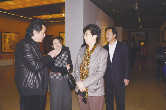 中國(guó)文聯(lián)黨組書記、副主席趙實(shí)與畫家張江舟在展覽現(xiàn)場(chǎng)