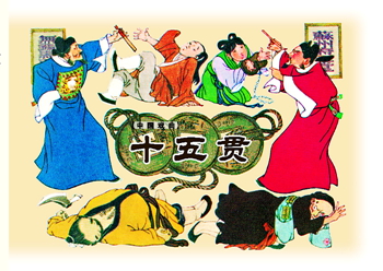 “戲做足了,就好看了。”賀友直以為連環畫就像是一出戲,需通過豐富而完整的情節來表達主題和塑造形象。他說,一個連環畫作者在創作時既是“導演”,又是“演員”,又兼“美工”。《小二黑結婚》是賀友直十分鐘愛的一部小說,一生多次以不同的形式改編創作連環畫。《十五貫》改編自著名昆曲劇目。他準確把握住了原作的輕喜劇意味,在人物塑造和場景設計上,善于捕捉細節,增加戲份,尤其在丑角人物塑造方面更見匠心獨運。