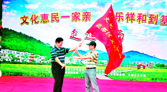 廣州市文聯主席喬平向花都區文聯主席授文藝志愿服務分團旗