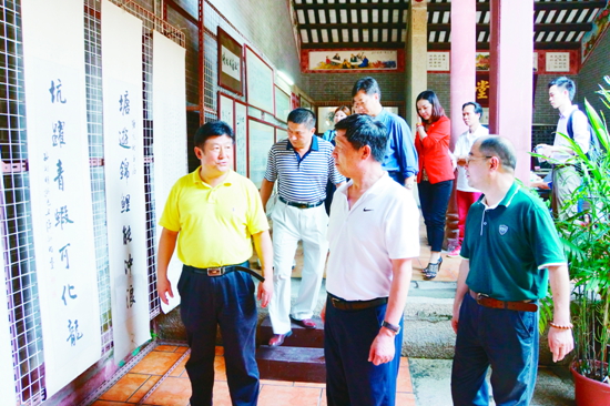 廣東省文化廳副廳長杜佐祥(左二)在塘坑村書法培訓基地考察書法課
