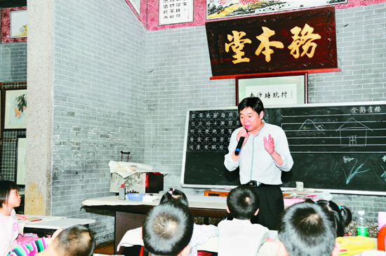 中國書協分黨組成員、副秘書長潘文海在塘坑村為孩子們講授書法課