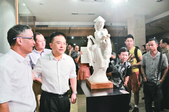 中共廣州市委宣傳部副部長、市文聯黨組書記伍第政參觀鐘志源漢白玉雕塑作品展
