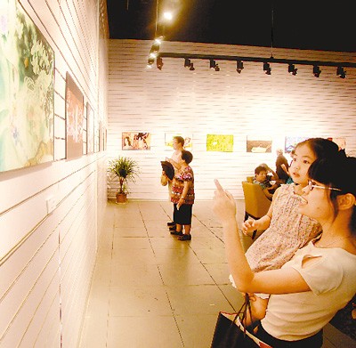 參觀者在上海環球港內連環畫藝術長廊欣賞畫作。本報記者 屠知力攝