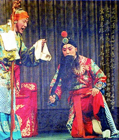 畫戲也是歐陽中石的特長,看完戲后回家就畫下來。心中有戲,盎然趣味流露筆端,如《薛剛鬧花燈》、《霸王別姬》等都能畫得惟妙惟肖。他初學“薛丁山”,還是一次偶然看演員排練的時候學的,隨后跟著留聲機反復練唱,直至佳境,乃至能演,可見其悟性非同一般。首次正式登臺演出是在1937年,那年他9歲。當時他在山東泰安岱廟大殿前披掛上陣,一唱便是三天,顯示出了過人的稟賦和才氣。