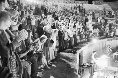 7月25日晚,在馬其頓的比托拉,觀眾觀看莎士比亞歷史劇《理查三世》后起立鼓掌。當(dāng)日,中國國家話劇院在馬其頓西南部小城比托拉具有近兩千年歷史的古羅馬式露天劇場演出莎士比亞歷史劇《理查三世》,這是比托拉莎士比亞戲劇節(jié)上的壓軸大戲,也是中馬建交20年來兩國最高級別的文化交流?!独聿槿馈吩诜b、布景及表演方法上采用了大量中國傳統(tǒng)文化與戲劇、戲曲元素。