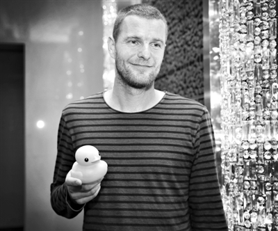 6月,霍夫曼在北京宣布將帶大黃鴨9月來京展出。 新京報記者 王遠征 攝