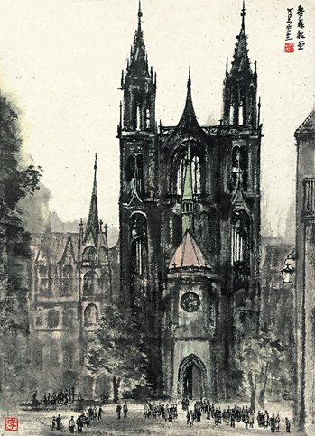 麥森教堂(水墨) 李可染