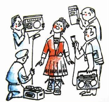 在公園劉三姐白色塑像下聚集著眾多民間歌手:有七十歲的老婆婆,也有佩戴銀飾的十七歲的姑娘。他們去到哪唱到哪,移步成思開口成歌。加上現代的傳播設備,給歌聲插上了翅膀。夜深了,人散曲未盡,歌手們載歌歸去,明月仍陪伴著美妙的歌聲,令人難忘。