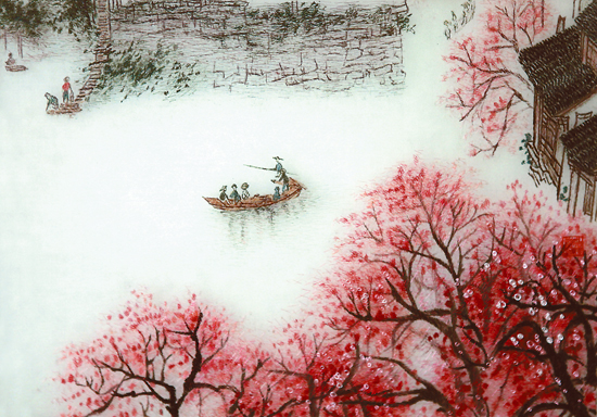 刺繡最早多為實(shí)用,及至宋元廣及書(shū)畫(huà)之制作,漸漸成為藝術(shù)珍賞之用。臺(tái)北“故宮博物院”所藏繡品幾乎皆為精品,繡工勻整,針線(xiàn)細(xì)密,設(shè)色精妙,深得書(shū)畫(huà)精髓,且均裱裝成冊(cè)軸卷,使觀賞者往往誤以為書(shū)畫(huà)。宋代是我國(guó)手工刺繡的高峰時(shí)期,特別是在開(kāi)創(chuàng)純審美的藝術(shù)繡方面令后人難以企及。據(jù)《宋史·職官志》載,宮中文繡院掌纂繡。徽宗年間又設(shè)繡畫(huà)專(zhuān)科,使繡畫(huà)分類(lèi)為山水、樓閣、人物、花鳥(niǎo),名繡工輩出,使繡畫(huà)由實(shí)用進(jìn)而向藝術(shù)欣賞發(fā)展,將書(shū)畫(huà)帶入手工刺繡之中,形成獨(dú)特的觀賞性繡作。姚建萍對(duì)蘇繡藝術(shù)化的追求,既體現(xiàn)了對(duì)傳統(tǒng)的回歸,也體現(xiàn)了一個(gè)現(xiàn)代繡娘在繡品中所蘊(yùn)含的對(duì)生命的熱愛(ài)、對(duì)人生的感悟。