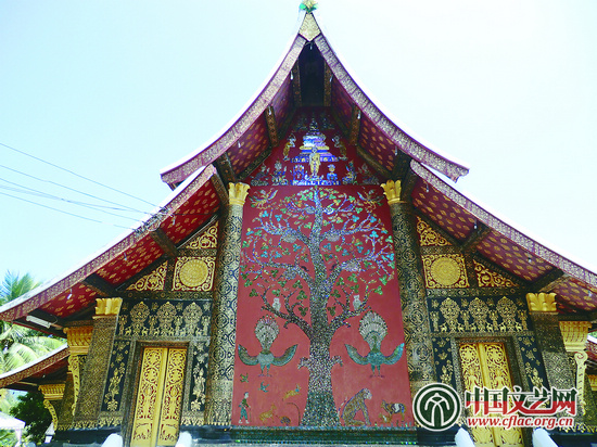 瑯勃拉邦香通寺背立面生命之樹的圖案尤為著名