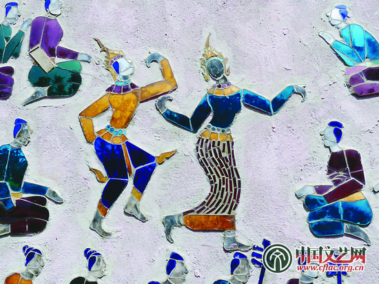 作為世界文化遺產(chǎn)的瑯勃拉邦香通寺,其最為珍貴的是建筑外壁上的彩色拼貼畫