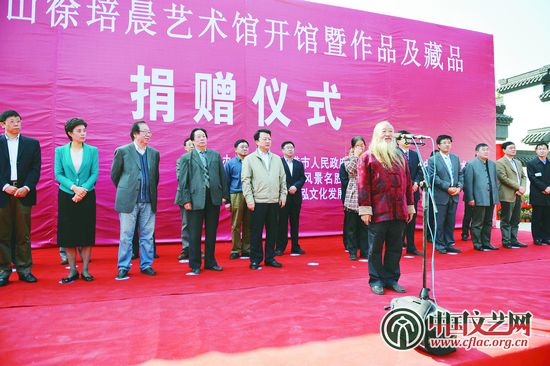 此次揭牌活動首先由滕雯致辭,喻繼高和繆建東先后講話。滕雯、徐培晨和刁斯為簽訂了捐贈協議,最后由李強、孫克、朱瑞凱為花果山徐培晨藝術館揭牌。