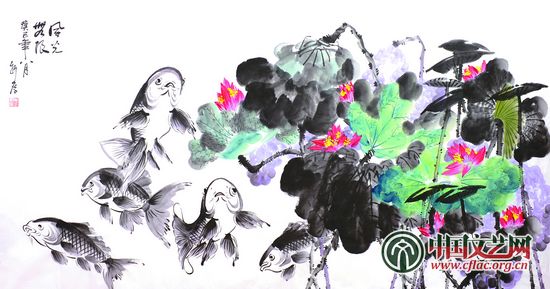 展覽共展出著名畫家萬新厚精心創作的大寫意畫魚作品72幅。這些作品既有深厚的水墨功底,更有創新的文化氣韻和世間感悟,畫出了魚的靈動可愛,也畫出了畫家的積極人生,畫出了中國畫創新的動力和希望。展覽展現了萬新厚“貼近生活,愉悅人生”的一貫創作風格,他的作品,從標題到題款,從畫面整體構圖到點線面穿插組合,從魚的形態變化到多姿多彩的顏色筆墨,都展現出扎實的造型基礎和筆墨技法基礎,更讓我們感受到他創作時的那種快意、灑脫的心態。