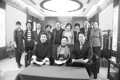 中國對外文化交流協會副會長董俊新(前排右)和中國文學藝術基金會副理事長姜昆(前排左)與越中文化交流中心副主任吳彩瓊(前排中)簽訂志愿協議