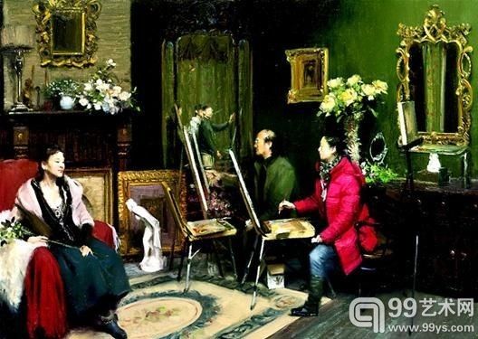 “它們與我的審美追求有一致的地方,它表現出我追求的藝術的傳統性和嚴謹性?!崩滠娬f,《畫室》系列要呈現經典油畫的構圖、光色、繪畫感,這與當代藝術不同,“當代藝術大多傳遞觀念,有時和技法無關,而要擁有傳統油畫表現的情趣,就一定要有技法的承載。”
