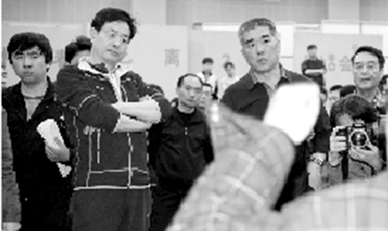 濮存昕在現場聽導演林兆華說戲。 京華時報記者 王儉 攝/視頻