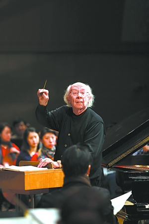 與“月光女神”幾乎同期,“紅色魔棒”格納迪·羅日杰斯特文斯基抵京。羅日杰與中國音樂界交往深厚,其父是李德倫的老師,而他又是中國指揮家張國勇的老師。3月1日下午,這位82歲的俄羅斯指揮大師來到了中山公園?;始覉@林的景致讓他頗有幾分流連,不過他有更重要的事情——在中山公園音樂堂的舞臺上,北京交響樂團(tuán)的100多號人馬正在等他排練。