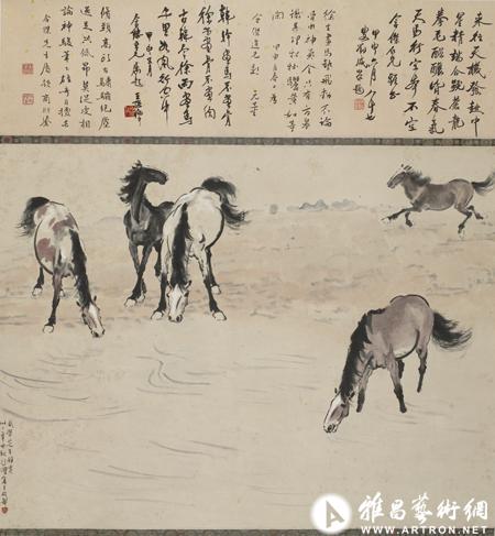徐悲鴻 五駿圖 設色紙本 立軸 一九四三年作 74×96cm