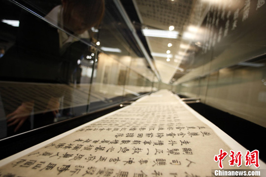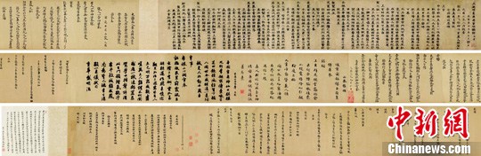 12月3日,堪稱國寶的元人書法長卷《瑞鶴詩》在北京匡時秋拍夜場以1.012億元人民幣成交。中新社發 楊可佳 攝