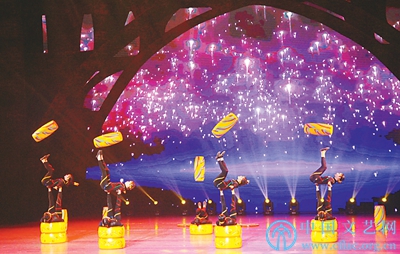 青年是事業(yè)的未來(lái),青春意味著無(wú)限可能。青年雜技健兒將中華傳統(tǒng)雜技技巧與當(dāng)代審美相結(jié)合,讓雜技這一古老藝術(shù)生生不息,如將一千多年以前的宋朝就有的“踢弄”即蹬技,化用在雜技《齊魯之韻——蹬鼓》中,演員將蹬大鼓、長(zhǎng)鼓、三節(jié)鼓等組合,讓鼓在腳尖騰挪旋轉(zhuǎn),猶如盛開(kāi)的花朵;抖空竹是國(guó)家級(jí)非物質(zhì)文化遺產(chǎn),雜技《媚——抖空竹》充分展示女性的柔與美,靈動(dòng)?jì)擅亩赂覄傄悖弧吧頍o(wú)彩鳳雙飛翼,心有靈犀一點(diǎn)通”,雜技《靈犀——空中技巧》結(jié)合拉丁舞風(fēng)格,演員在空中飛翔起舞,意境優(yōu)美;魔術(shù)《超越》中,將古老傳說(shuō)中的“穿墻術(shù)”搬上舞臺(tái),魔術(shù)師傅琰東穿魚(yú)缸而過(guò),還別具新意地演繹了劍插箱子與隔空換人;滑稽《三個(gè)和尚》靈感源于中國(guó)民間故事“三個(gè)和尚”,融入頂花壇技巧,借用昆劇“雙下山”的喜劇風(fēng)格,用中國(guó)故事演繹中國(guó)式滑稽,演出中身披紅黃藍(lán)袈裟的三個(gè)“和尚”生動(dòng)詮釋了團(tuán)結(jié)協(xié)作的力量,讓人捧腹又引人深思。
