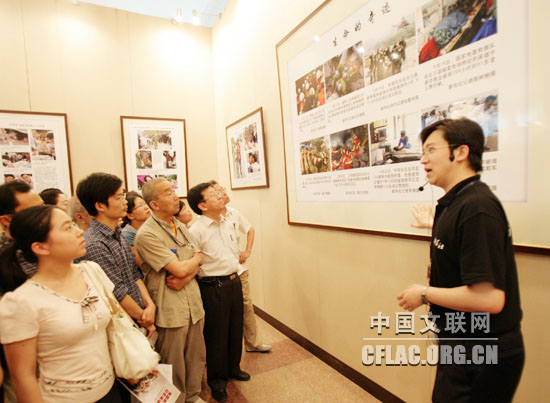 6月18日,中國文聯干部職工在觀看“抗震救災 眾志成城——2008中國抗震救災大型新聞圖片展”。中國文聯網 孟祥寧 攝