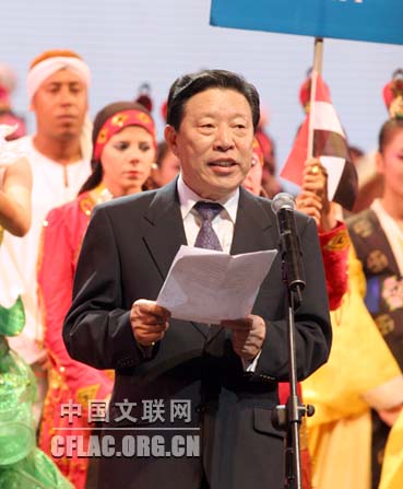 10月17日晚,由中國文聯和江蘇省人民政府主辦,蘇州市人民政府、江蘇省文化廳、江蘇省文聯承辦的第八屆中國國際民間藝術節在京落下帷幕。圖為全國政協副主席、中國文聯主席、本屆藝術節名譽主席孫家正致閉幕詞。中國文聯網 孟祥寧 攝