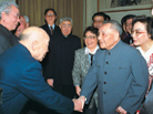 鄧小平與全國政協副主席、數學家蘇步青握手。