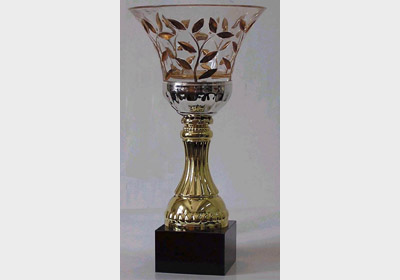 獎(jiǎng)杯柱頭為金葉花水晶杯。
