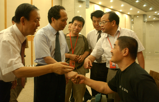 吉炳軒、李樹文、覃志剛、仲呈祥等與張魯交談。