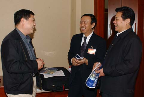 李樹文(中)、甘英烈(右)看望與會委員。