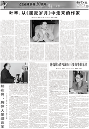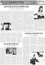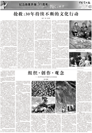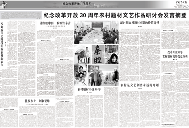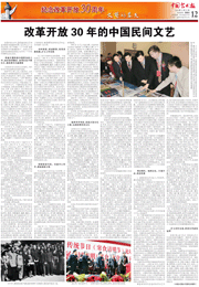 “文藝的春天”板塊(第5版至16版)為您呈現的,正是中國文聯及各文藝家協會改革開放30年來走過的道路,正是中國文聯及各文藝家協會團結帶領廣大文藝工作者,為中華文化復興而描繪出的一道道迷人風景。 |
